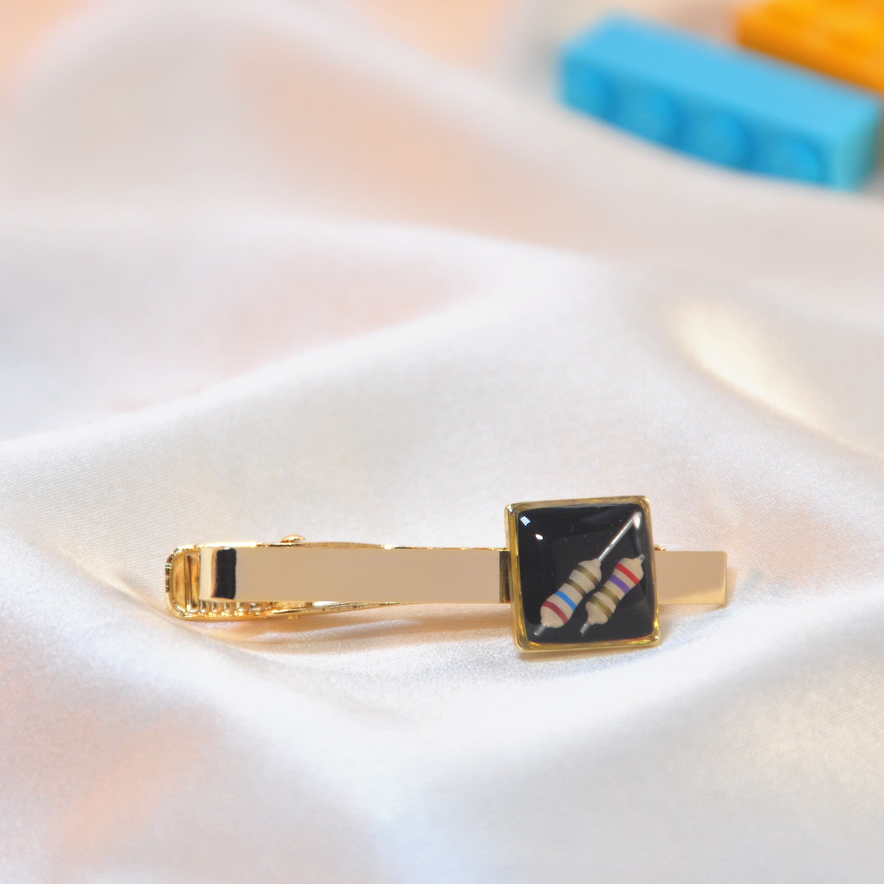 抵抗をレジンに閉じ込めた少し変わったネクタイピンです。